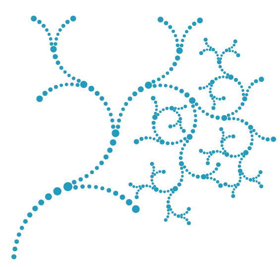 The artist generates forms using recursive computer algorithms, Fibonacci geometry, and other mathematical relationships. The resulting pieces take on a life of their own. Ray then uses the Computerized Numerical Control (CNC) to cut the forms from metal and carefully crafts them into one of a kind pieces using resin, light, and electronic circuitry.